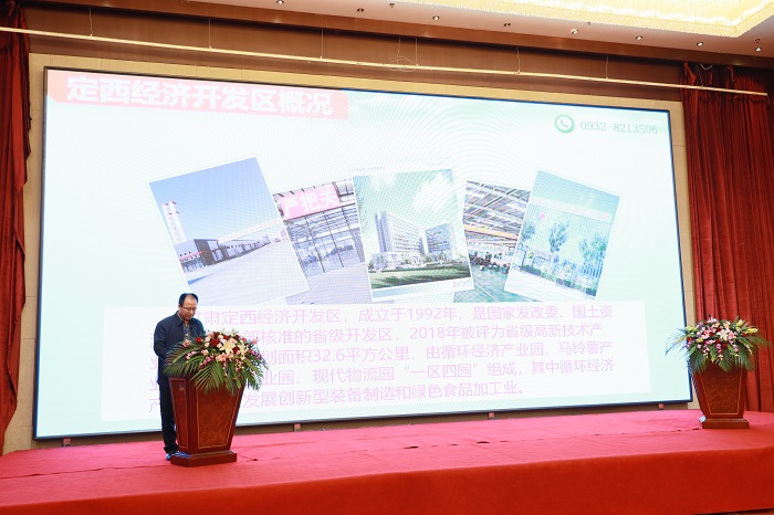 张应钦首先介绍了定西的市情和资源禀赋。他说,我市始终牢记习近平总书记“富民兴陇”的殷殷嘱托,坚持发挥资源优势、区位优势、后发优势和绿色发展优势,着眼于有效盘活全市各类存量自然资源,探索形成了“资源变资本”的融资模式。